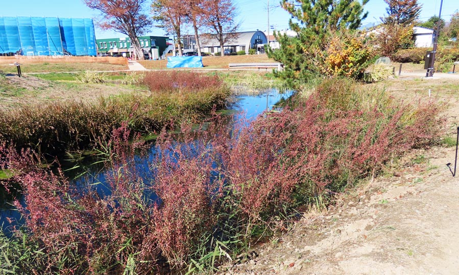 華蔵寺公園共生『はな咲く。』プロジェクトの一環として再整備された水生植物園。2023年11月に着工した当工事も今年2025年9月末頃には概ね終えました(→工事の経緯はこちら)。その後、PFI工事としてのカフェ建設や照明灯工事等が続いていますが、園内は既に供用開始され、自由に散策することができます。 改修された水辺や水路には新たに種々の水生植物が植えられ、花の名前が書かれた標識も立ちました。当ページでは、これらの水生植物の四季折々の姿を順次紹介して参ります。(2025/12/9 記) ・アサザ(A) ・カサスゲ ・クサレダマ ・コウホネ ・サンカクイ(S) ・スイレン(黄) ・スイレン(白) ・チダケサシ ・ノハナショウブ ・ハンゲショウ ・ハンショウブ ・ミソハギ(M) ※()内は右の画像に示す各植物の位置 |