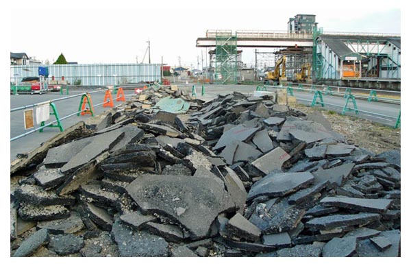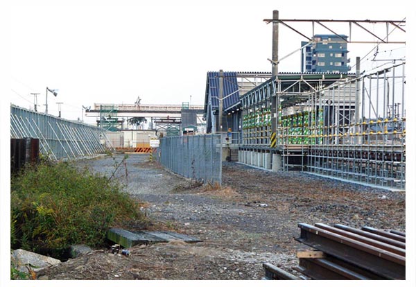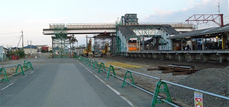 ![]() 工事用塀に囲まれたJR両毛線地上軌道(駅西方)。右後方に「アイタワー花の森」 2007/11/17 ![]() 工事用塀に囲まれた伊勢崎駅ホーム。右後方に「アイタワー花の森」 2007/11/4 ![]() 駅北で進む道路工事。既設アスファルト舗装を剥離。2007/11/4 |
