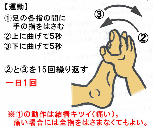 ▲ページTopへ|▲Indexへ (1)浮指浮き指とは、歩行時などに足の指が床や靴底に着かない状態のこと。浮き指は歩行が不安定になるだけでなく、頭痛・肩こり・腰痛・ひざ痛になり易い。 浮指治療に有効な運動は・・・