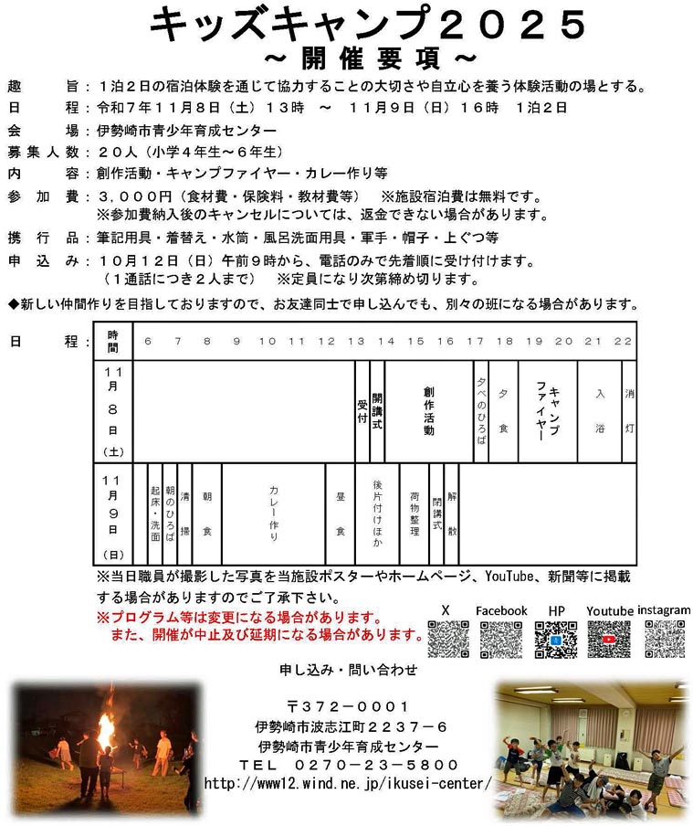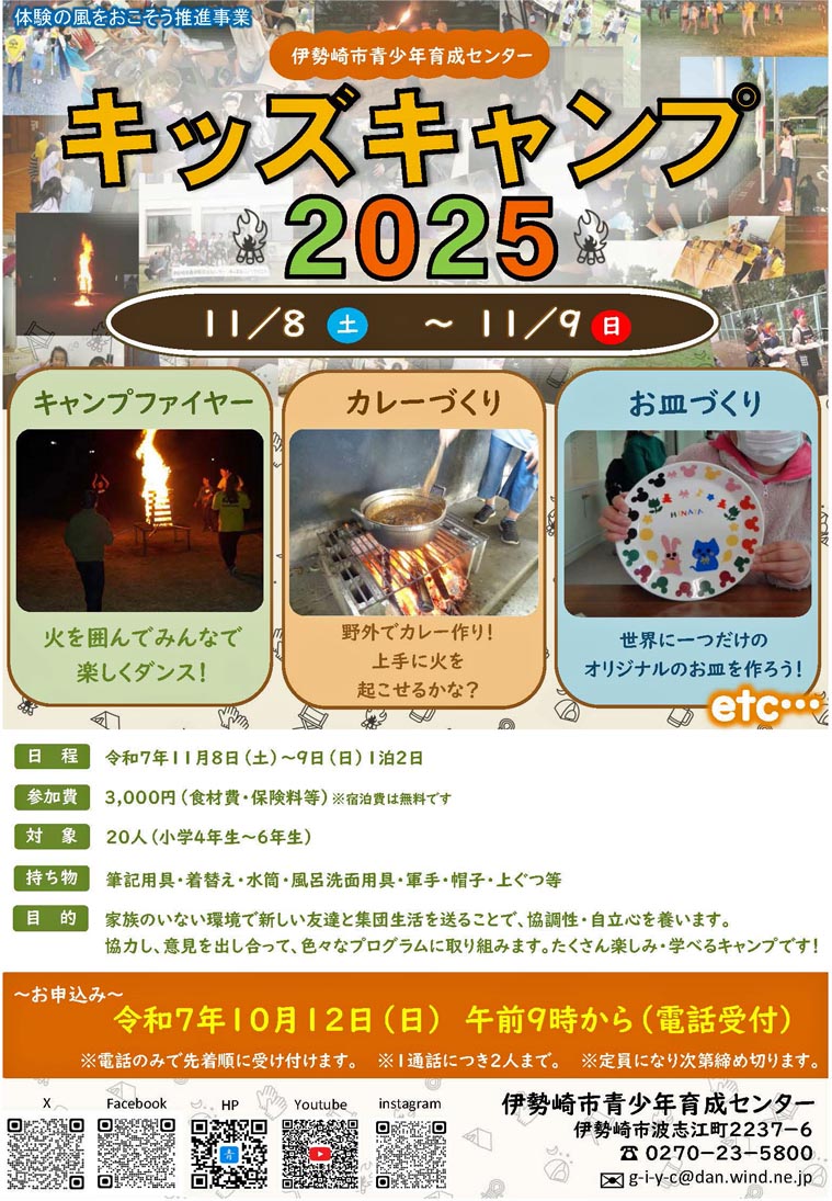令和7年度 伊勢崎市青少年育成センター体験活動事業