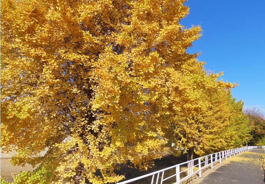 粕川沿い、公園脇のイチョウ並木・2025 |