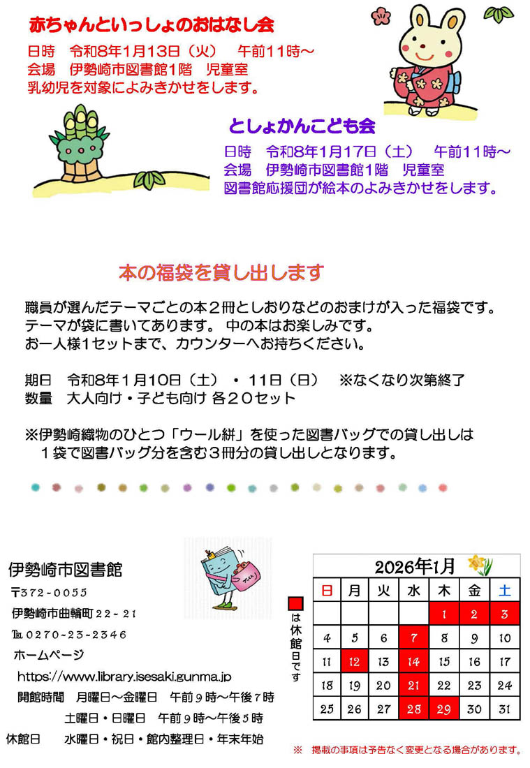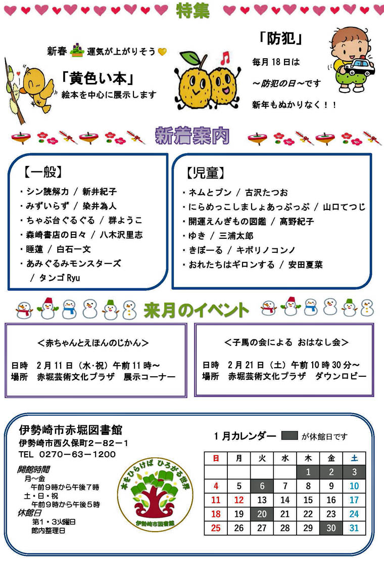 伊勢崎市内の図書館だより 2026年1月