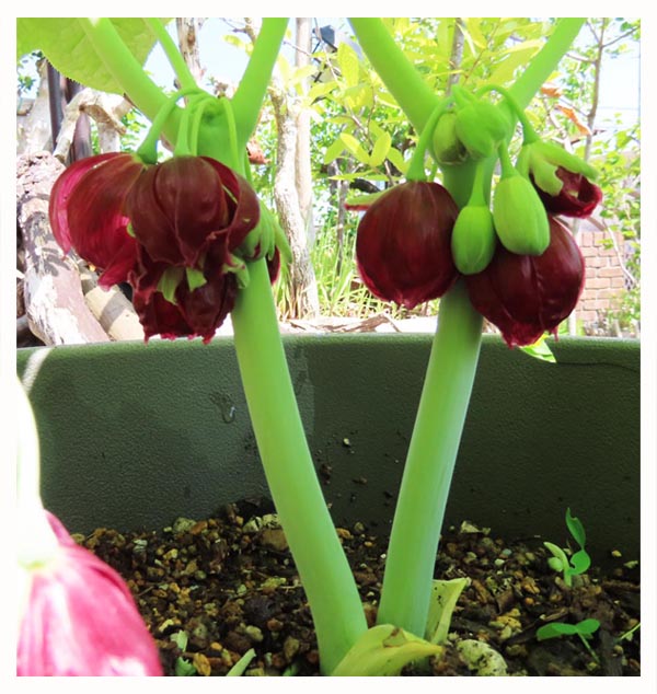 昨年紹介した我が家のハッカクレン。全て鉢植えで、2つが内径(辺長)33cmで単独植え、1つが内径22cmで寄せ植えでした。