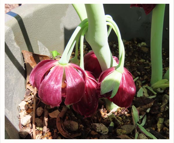 辺長33cmの正方形鉢のハッカクレン、成長記録ハッカクレンの花が咲きましたハッカクレンの花が咲きました。4月28日に確認した薄緑色の卵状の蕾は、全て”がく”に包まれた姿でした。![]() 蕾が膨らみ始め、花弁が赤く変わったことを確認したのが4月30日。この時は花弁は”がく”に半分包まれていました。次に確認したのが5月2日。この日には”がく”が落ちていて、花弁も丸く膨らんでいましたが、下向きなので雄しべや雌しべの様子は確認できません。 その後5月3日と5月6日に観察すると、”がく”は蕾の膨らみと半比例して萎んで小さくなり、やがて落ちたようです。 葉っぱが非常に大きく、それに比して小さな花。でも葉も花も艶々として個性的なハッカクレン。今年は鉢植えでも立派に育ってくれましたが、来年はどうなるでしょう。水あげや施肥、根分けなど、時々世話をしましょう。(2024/5/7 記) ![]() 上から見ると葉に覆われて見えません 2024/5/7 ![]() 開花が進むと”がく”が萎んで落ちますが、花弁は下向きのままなのが残念。 2024/5/6 ![]() 咲いたのは4つ。全ての花弁が赤く変わりました。 2024/5/6 ![]() 花弁が丸く膨れましたが、中の様子は分かりません。 2024/5/3 ![]() ”がく”が落ちました 2024/5/2 ![]() 葉っぱの大きさに比べて、花は小さい。 2024/5/2 ![]() 花弁が下向きなので、アップで撮っても雄しべ雌しべが確認できません。 2024/4/30 ![]() 大きな”がく”に包まれ、花弁が赤く変わりました。 2024/4/30 2024/4/28![]() 株数が多い分、養分を分け合ったようで、個々の成長がイマイチ 2024/4/28 ![]() 蕾が2枚の葉のつけ根部に付いているので、「タイワンハッカクレン」のようです。 2024/4/28 ![]() 確認できた蕾は3つ 2024/4/28 2024/4/24![]() 葉っぱが出揃いました 2024/4/24 ![]() こんな場所に置いてあります。午後半日陰になります。 2024/4/24 鉢で育てないと、周囲のクリスマスローズ等の成長に負けてしまいます。 2024/4/19![]() まだ芽吹きが続いています 2024/4/19 2024/4/16![]() まだまだ発芽中 2024/4/16 2024/4/14![]() 次々に発芽中 2024/4/16 2024/4/12![]() 発芽直後の葉っぱは緑が濃くて艶々しています 2024/4/12 ![]() 周辺では峠を過ぎたクリスマスローズが勢力拡大中 2024/4/12 2024/4/8![]() 芽吹き始めはキノコのような形です 2024/4/8 ![]() 芽吹きが始まりました 2024/4/8 |