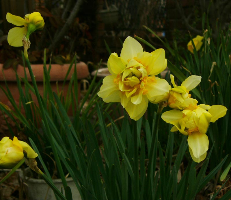 | 我が家で咲く水仙は4種類。以前は更に2種類あったのですが、いつの間にか消えてしまいました。これ以上増えなくてもいいと思う種類がどんどん増えて、増えて欲しいのが消えしまって、なかなか思うようには行きません。人生と同じ。 | |