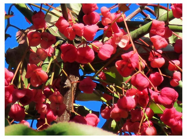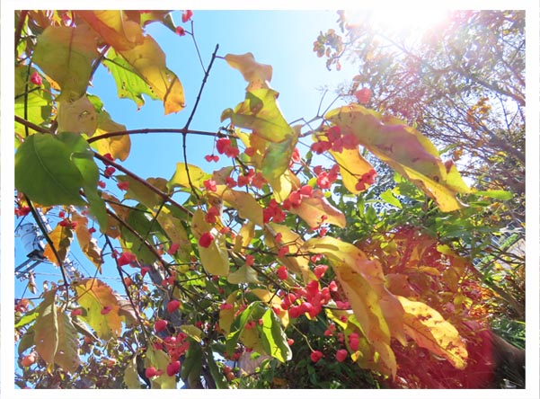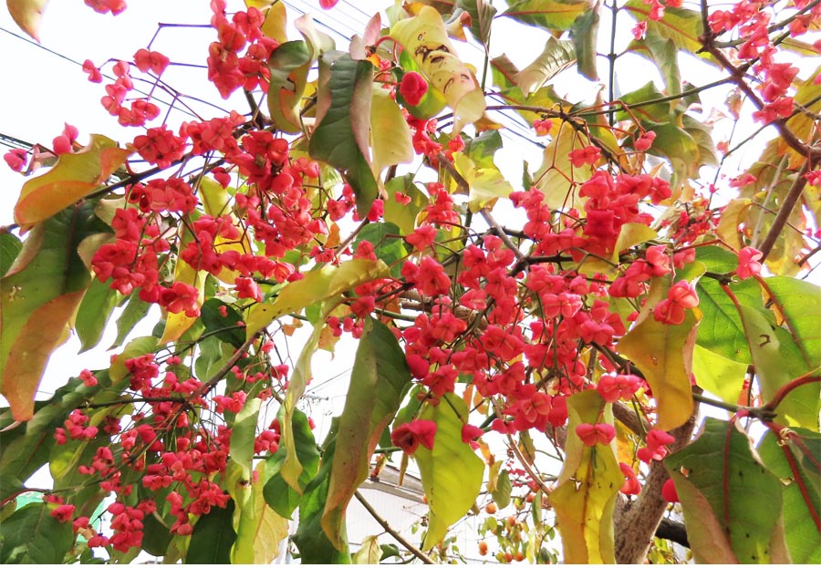 葉の緑がまだ濃く、かつ小さからぬ葉に覆われて、マユミの実が目立ちません。![]() まだまだ葉が茂るマユミ 2025/11/3 ![]() 既に実は朱色に変化 2025/11/1 ![]() 葉に隠れながらも日々存在感を増すマユミの実 2025/11/11 |