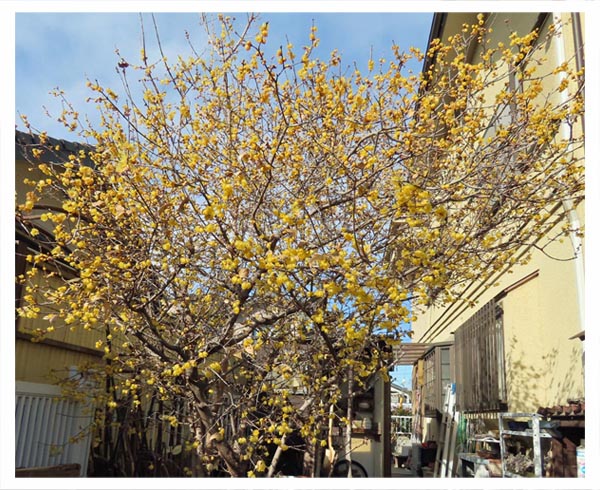 | 庭に様々な花や木を植えて通年楽しんでいますが、12月中旬を過ぎると黄葉も終盤になり、花も少なく、殺風景になります。園芸店ではパンジーやプリムラ、葉牡丹、ポインセチア、シクラメン等、耐寒性の花を売っていて、我が家でも道路沿いの花壇には植えますが、屋敷内の庭には植えず、四季折々の宿根草の開花を待つのみです。 そんな庭の冬景色に彩を添えてくれるのがロウバイです。我が家のロウバイは2種類あって、1つは早生種で、12月中旬から咲き始め、1月初旬には満開を迎えます。ロウバイを気に入っているのは、辺り一面に芳香を漂わせてくれること。梅やバラ等、微香を発する花と異なり、また身体が触れると芳香を発するハーブ類等とも異なり、モクセイ同様、その香りは結構強く、近くへ寄らずとも香ってきます。 前回紹介から2年が経過していますが、樹高も枝張りも一回り大きくなりました。もろに北風の通り道に立っていますが、この場所を気に入ったようです。(2026/1/9 記) |