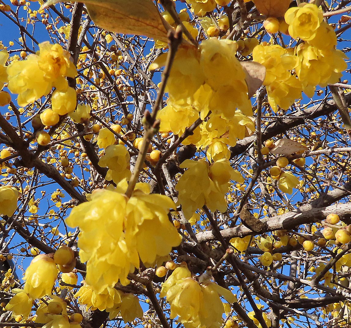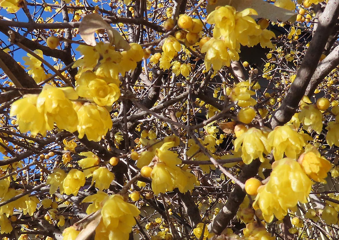 正月準備万端、ロウバイ満開先日、紹介したばかりの我が家のロウバイ。12月30日にはほぼ満開になり、庭に甘い香りが漂っています。切り花にして玄関や家の中の数か所に飾ると芳香剤の代わりを務め、正月気分を味わわせてくれます。ロウバイは我が家の正月の名脇役として欠かせない存在です。(2024/1/1 記) |