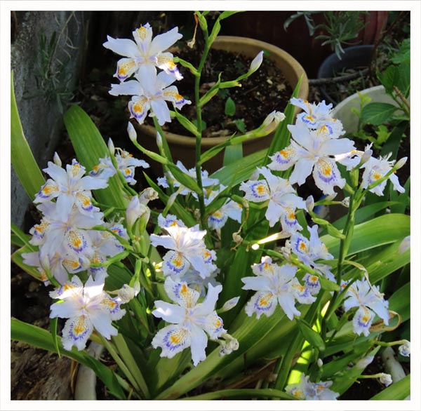 シャガ 2025鉢の中で復活昨年シャガを紹介した時(→2024)、以下のように伝えました。「繁殖力が旺盛だったのに、気がつけば2株しか残っていなかった。その2株は安全のために鉢に退避したが、その後の育ちが悪くて蕾が咲かずに萎んでしまい、外側の葉っぱが枯れ、根付くのか心配な状態」 退避は1つの鉢に1つの株。2鉢共に午後日陰になる場所に置き、半分諦め気分で気長に様子を見ていましたが、いつの頃からか(正確な記録はしていませんが、2月中頃から)様子が好転し、元の株が根付いただけでなく、周辺にランナーで新株を増やしました。3月に入ってから葉の数も増え徐々に大きくなり、花穂も伸びて来て、4月上旬には開花が始まりました。鉢に移植してから開花までの間、世話をしたのは乾燥に注意して水をあげた程度。 シャガは養分よりも領地が大切?以前はニンジンボクとボクハンの根が張る場所で、シランやキク、ツワブキ、ノカンゾウ、ユウスゲらと領地を取り合っていて、彼らの強さに負けてしまいましたが、生き残った小さな株を鉢に移植したところ立派に復活し、たくさんの花を咲かせてくれました。この結果を見ると、シャガは養分よりも本人専用の場所が必要なようです。改めて庭の草花を見てみると、友人からもらった福寿草やフウチソウ、アスチルベも本人専用の鉢の中で元気に育っています。どうやら領土争いに負けそうな草木は専用の領土を確保してあげるのがいいようです(2025/5/1 記)。 鉢-1![]() 開花終盤 2025/4/30 ![]() 鉢の中で株をたくさん増やしました 2025/4/21 ![]() 開花中盤 2025/4/21 ![]() 根は土中に深く入っておらず結構頼りない 2025/4/21 鉢-2![]() 開花終盤 2025/4/30 ![]() 開花中盤 2025/4/21 ![]() アップで見ても美しい 2025/4/21 ![]() 真ん中に移植しましたが、なぜか隅の方にランナーを伸ばしました 2025/4/21 |