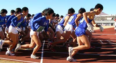 ![]() スタート10分前。 スタートラインに集合。 ![]() 上武大学の招待選手 来年正月の箱根駅伝の出場選手もいるのでしょうか。 |