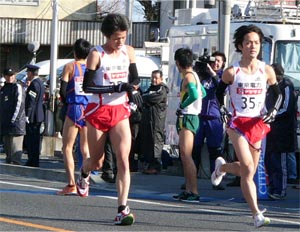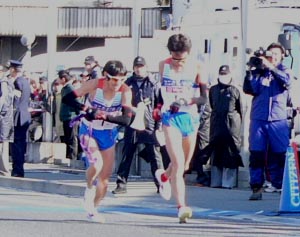 このページは、2009年1月1日の「ニューイヤー駅伝・第53回全日本実業団対抗駅伝」の「赤堀JA」中継地点(6区のゴール、7区のスタート)での様子をお伝えします。先頭の通過予定時刻は13:05分。県庁前9:05スタートなので、経過時間(電光掲示板の表示)ではちょうど4:00です。(2009/1/2 記) ※画像の順序は到着順序とは無関係です。掲載を削除したい場合には、ご面倒でも管理人までご連絡(Topページ最下段)ください。 |