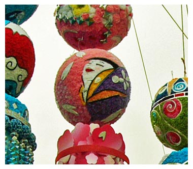 ![]() (16)月へ旅立つかぐや姫 ![]() (18)吊るし雛のような蹴鞠のような飾り ![]() (20)紅白の羽を広げた折り鶴 |