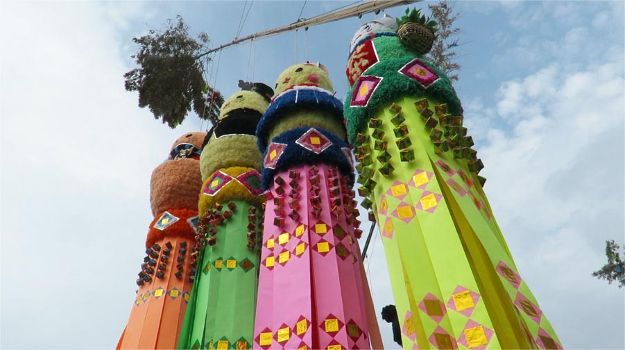 | 伊勢崎市の夏の風物詩、いせさき七夕まつり。2016年の開催は7月16日(土)、17日(日)。 2日目の7月17日は朝からハッキリしない天気。七夕飾りの展示が始まる午後2時過ぎには何度かのにわか雨。その後しばらくして天気も落ち着き、本町通りには大勢の人が訪れました。 今年、飾り付けに協力したのは保育園や幼稚園、小学校、地元商店街や企業など56の団体。にぎわい広場や百店会会場、赤石学舎やいせさき明治館、からくり時計前では、様々なイベントが催されました。空模様が安定した午後3時から4時頃の間、本町通りを中心に一回り歩きました。動画でご覧ください。(2016/7/19 記) |