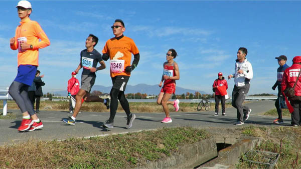 | 第15回 伊勢崎シティーマラソンが12月1日(日)、伊勢崎市・華蔵寺公園運動施設を起終点として開催されました。コースは1.5km、5km、10km、ハーフの4コース。今年は全コースがリニューアルされ、ハーフマラソンと10kmコースは今までと同様、日本陸連公認コースです。今年の完走者数は1,586人(→)。 過去のコースは華蔵寺公園周辺と公園の北から西にかけてのコースでしたが、今回は公園の東から北にかけてのコース。1.5kmコースを除き、陸上競技場をスタート後、北部環状線を東へ進み、「鹿島町南」交差点を左折して国道462号を北上。 5kmコースは「華蔵寺公園入口」で左折、10kmとハーフは直進。途中右側に「新沼」を眺め、上武道路と北関東自動車道の橋梁の下をくぐり、「三和町」交差点を左折。粕川に架かる「五目牛(ごめうし)橋」手前を右折し、工業団地と堀下町の田園地帯を走りコース北端部の赤堀南小で折り返します。桜咲く春4月、粕川の堤防上で泳ぐ鯉のぼりが、この日も泳いでいました。シティマラソン歓迎の配慮でしょうか。 折り返し後「五目牛橋」まで戻り、「五目牛橋」を西へ渡り、北関東道の高架橋の下を走り、上武道路のボックスカルバートをくぐり、前方右後方に華蔵寺公園遊園地の観覧車「ひまわり」、右手に地蔵山古墳を眺めながら、五目牛町の田園地帯を走ります。コースが旧伊勢崎市の外へ出たのは初めてのことです。 今回のコースも我が家の近所なので、普段、徒歩やサイクリングでブラブラしている範囲。青空と赤城山、古墳や田園、赤城見台公園、粕川、黄葉する楓の街路樹など、ランナーの引き立て役はたくさん揃っています。この日の天候は風弱く青空が広がる絶好のマラソン日和。撮影ポイントのスタートは赤堀南小の南側。以降、徐々に南下し、堀下町、五目牛町、波志江町と順に十ヶ所余りで撮影し、最後は陸上競技場へ戻り会場の雰囲気を撮影して終了しました。 一年を通じて様々なイベントが催される伊勢崎市ですが、伊勢崎シティマラソンを終えると年の瀬が近付いたことを感じます。(2019/12/6 記) 第15回 伊勢崎シティーマラソン大会(7分52秒) 2019/12/1 |