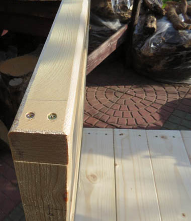 ![]() 角材を組立て、ネジ釘で締め付け完了。接合部の詳細は以下。 |