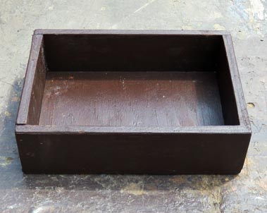 ![]() 充填モルタルの型枠代わりに空き箱を利用 ![]() 型枠としての空き箱を除去 ![]() 木箱に収めて完成 |