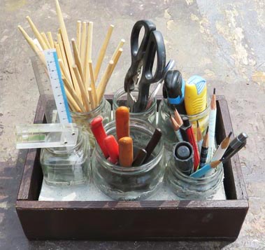 ![]() 隙間にモルタルを充填 ![]() 容器として木材で箱を制作。いつも通りの端材利用。 ![]() 使用状況。ペンチやニッパ、ハサミ、カッター等。 |