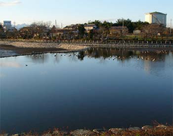 ![]() 遊歩道の樹木が紅葉の頃に撮れば、 またいいシーンになるような・・・。 2011/10/9 ![]() 2基の水道タンクと波志江沼と鷺の群れ 2011/10/9 |