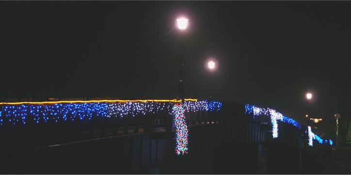 2010年ここに紹介する写真は2010年のイルミネーションの一部です。→詳しくはこちらに掲載してあります。![]() 遠路橋から「みんなの広場」に装飾されたイルミネーションが波志江沼の水面に映えて、おとぎの国のようです。 2010/12/11 |