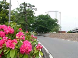 ![]() ハーブコーナーで咲くラベンダー 2009/5/30 ![]() 下沼と上沼の間の道路脇に沿って 真っ赤なシャクナゲが咲いています。 後方の白い円塔は水道タンク 2009/5/30 |