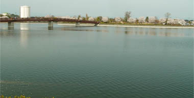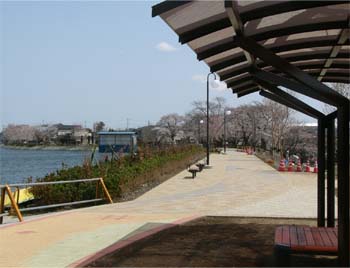 ![]() 波志江沼・園路橋と堰堤沿いの桜並木 2013/4/1 ![]() 波志江沼・南側堰堤とケヤキ広場と繋ぐ斜路 2013/4/1 |