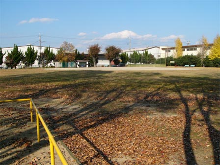 | この公園はアピタ伊勢崎東店のすぐ南、伊勢崎公設市場等が入っている「伊勢崎東流通団地」内にあります。周囲が工場や倉庫ばかりのせいか、訪れたのは土曜日の午後でしたが、公園には誰もいませんでした。 公園は周囲の道路の高さより1mくらい高くなっていて、園内には多目的の広場と南西の隅に昔ながらの公園の遊具がありました。広場は野球ができそうな広さです。 公園の少し東側には同じ様な大きさの三室公園があります。(2006/12/9 記) ![]() 公園の東側のイチョウ並木 2006/12/2 ![]() 南西から広場を見る・周囲は工場群 2006/12/2 ![]() 南西の藤棚と遊具コーナー 2006/12/2 ![]() 西側の植え込み・トイレ 撮影 2006/12/2 |