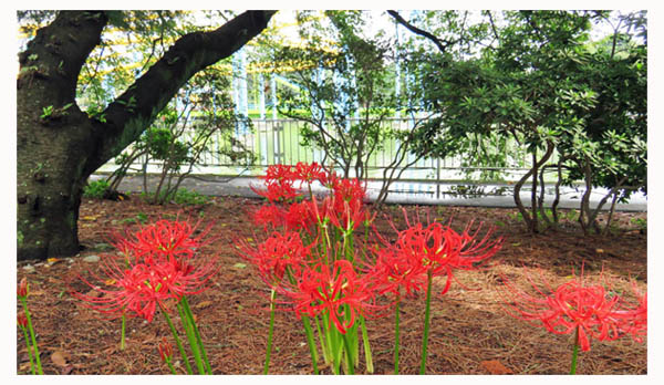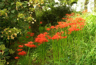 | 8月中旬から9月に入り、前線や台風の影響で連日のように不安定な日が続き、9月9日から11日にかけては、茨城、栃木、宮城など関東・東北で甚大な被害が出ました(気象庁は「平成27年9月関東・東北豪雨」と命名)。この間、爽やかな晴天は僅か数日。そんな2015年の秋、ゴールデンウィークに次ぐ大型連休となったシルバーウィーク初日9月19日は、見事な晴天となりました。まさに待ちに待った秋晴れです。 気候に敏感な戸外の花たち。彼岸花もこの涼しさを敏感に感じ取ったようで、伊勢崎市各地の彼岸花も例年より一週間から10日早めに咲き始めました。ここ華蔵寺公園でも例外ではなく、9月初旬から咲き始め、緑濃い園内で真っ赤な花を咲かせ、人々の目を惹きつけています。華蔵寺公園で彼岸花が目立つようになったのはここ数年。境三ツ木の「早川淵・彼岸花の里」や「御嶽山自然の森公園」には及びませんが、年々少しずつ増えています。 遊園地で有名な華蔵寺公園ですが、春先の梅、4月の桜、5月のツツジ、6月の花しょうぶも魅力です。いつの日か9月の彼岸花もその配役として名を連ねることと思います。 (2015/9/20 記) |
