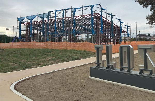 8月末に基礎工事が進んでいた華蔵寺公園・水生植物園内のカフェ建設現場。10月に入ってから鉄骨骨組みの組立工事が始まり、10日には完了していました。屋根形状は北に向かって下り勾配の「片流れ」型式。完成後を想像するに、店内の南側は広いガラス面、太陽光がタップリと射し込み、席からは水生植物園が一望でき、季節によっては店の外にもオープンカフェ。 園内散策や遊園地で遊んだ後、日々の散歩の途中で、家族や友人、恋人とのケーキ&コーヒータイムに、様々な人が立ち寄るでしょう。(2025/10/13 記) ![]() 工事が進むカフェ(南東側の園路から) 2025/10/10 ![]() 工事が進むカフェ(西側の駐車場から) 2025/10/10 ![]() 工事が進むカフェ(北西エントランスから) 。後方に観覧車とジェットコースター。2025/10/10 ![]() 鉄骨骨組みの組立を完了したカフェ(北側のスポーツロードから) 2025/10/10 基礎工事進む 2025/8/30掲載日:2025/8/31 ▲ページTopへ