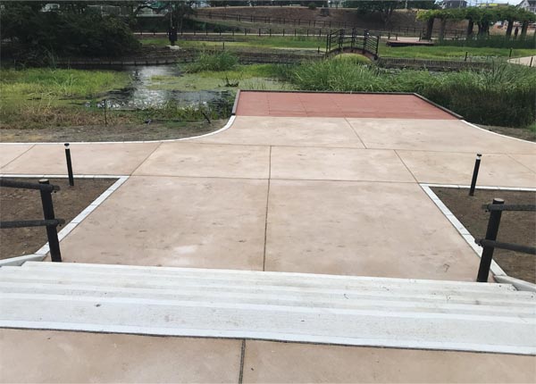 | 華蔵寺公園 水生植物園の北西角地でエントランス工事が進んでいます。工期は今年の9月30日。工事数量を確認すると、北東角地と同様にインターロッキング舗装されるようです。4月6日時点で、西側に隣接する元市民プール跡地駐車場との境界に縁石が布設され、路盤工まで完了した様子。 エントランスに接して飲食店(カフェ)の建設工事も始まっています。両工事の工程調整もあると思われますので、今後の進捗が気になるところです。(2025/4/10 記) 北西エントランス工事 概要(※伊勢崎市契約検査課ウェブサイトと現地工事看板を参照しました)■開札日:2025/1/23 ![]() ■発注部署:公園緑地課 ■工事名:華蔵寺公園 水生植物園 北西エントランス 外 築造工事 ■工事箇所:伊勢崎市 華蔵寺公園 水生植物園 ■受注者:(株)栗原工務店さん ■工期:令和7年(2025年)1月30日〜令和7年9月30日 ![]() 現地に立つ工事看板 2025/3/18 ![]() 園北西エントランス(上図■色で塗りつぶした位置) (※ぐんま電子入札共同システムの資料から一部抜粋して加筆) 掲載日:2025/7/7 ▲ページTopへ インターロッキング舗装、車止め設置 2025/7/5 華蔵寺公園・水生植物園の北西角地のエントランス工事の7月5日の状況です。