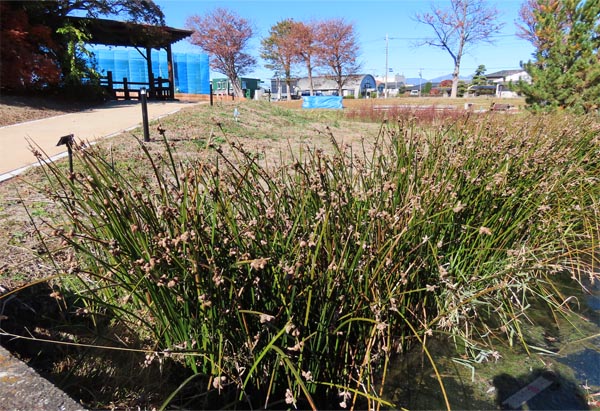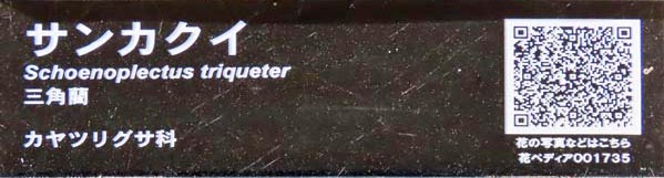 | 以下、Wikipediaから一部引用 サンカクイ(三角藺、学名:Schoenoplectus triqueter) 【分類】 カヤツリグサ科、フトイ属、サンカクイ ・単子葉植物カヤツリグサ科に属する植物。茎の断面が三角でイグサに似ている。 ・サンカクイの和名の由来は、三角形のイグサ(藺草)から。 【特徴】 湿地性の多年生草本で、大きな群落を作る。地下茎は水中の泥の中で横に這い、まばらに花茎を上に伸ばす。花茎は高さ1m程に伸び、太さは1cm近くなる。深緑色でつやがあり、やや硬い。 ![]() 現地に立つ説明板 2025/11/22 |
