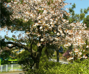 ![]() 松と並んで満開の八重桜 2013/4/13 |