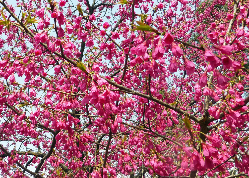 ![]() ヒカンザクラは色が濃くて、花弁に特徴があり、釣り鐘状の形です。 2015/3/23 |