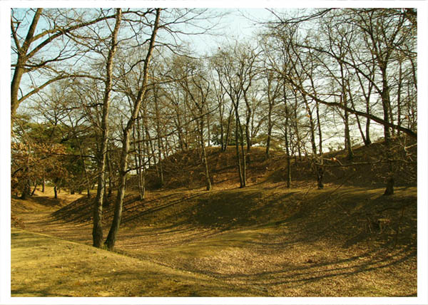 | 古墳の周囲には大木が茂っていますが、このように整備される前は、更に樹木や雑草に覆われた鬱蒼とした雰囲気で、古墳の周囲の壕には南西側から東側、北側にかけて水が溜まっていました。古墳散策が好きな私は、その頃にも子供たちを連れてたまには訪れていましたが、その当時の未整備な状態もそれはそれでちょっと探究心を刺激する楽しさがありました。 | |