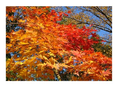 錦 秋 2010年伊勢崎市内に数ある公園の中でも、こんなにも紅葉がきれいな公園は珍しいでしょう。ケヤキやメタセコイヤ、カエデやイチョウ、アメリカハナミズキなど、様々な種類の落葉樹が赤や黄色に変色し、この時期の境駅北公園は園内全体が錦色に染まります。これらの木々が整列ではなく、ごく自然に生えたような間隔で植えられ、特に公園の南西端にある山の中に身を置くと、ここが住宅地であることを忘れさせてくれます。 |