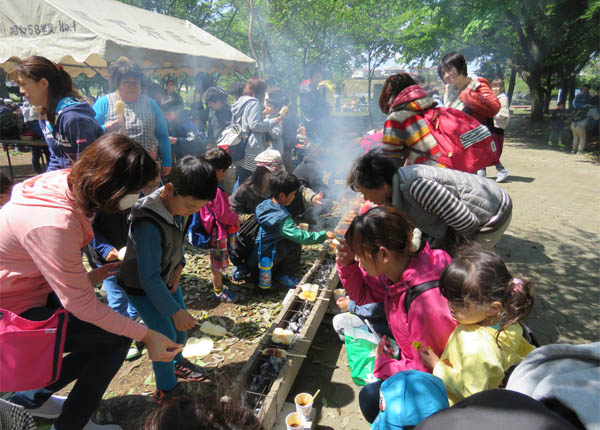 | ゴールデンウィーク初日の4月29日(祝・昭和の日)、赤堀せせらぎ公園において「親子ふれあいフェスティバル in せせらぎ」が開催されました。会場は爽やかな新緑に包まれ、午前10時から午後1時まで、大勢の参加者が様々なアトラクションに参加し、観覧するなどして楽しんでいました。 焼きまんじゅう体験では参加者が自分でまんじゅうを焼き、寄せ植え体験ではワンコイン500円で5種類の花を寄せ植えし、熊本地震寄付として草花が販売され、魚のつかみ取りでは小学校3年生から小学校6年生の児童が園内の小川に放流された鱒を追い駆けました。 ミニはしご車体験は都合により中止になりましたが、代わりに白バイやパトカー、救急車、消防車の体験乗車が行われました。風が強く吹いたため、熱気球体験は中止となりました。 音楽アトラクションとして、ひごろも太鼓と赤堀中学校吹奏楽部の演奏が披露され、軽快な和太鼓や吹奏楽の音が、風に乗って周囲に響き渡りました。(2016/5/3 記) |