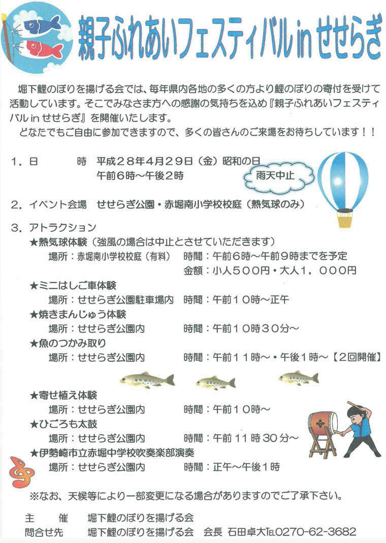 親子ふれあいフェスティバル in せせらぎ(4分31秒) 2016/4/29 |