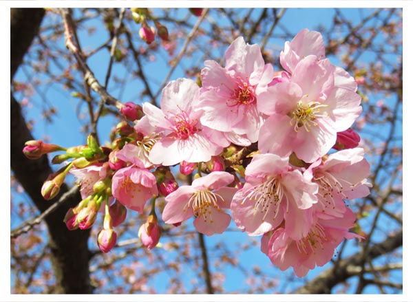 | 寒い日が続いた今年の冬。日本海側や北海道からは、毎日のように大雪やその被害のニュースが届きました。今年はこの寒さで、「いせさき市民のもり公園」の河津桜の開花も遅いだろうと思っていると、先週、NHKテレビの夕方640で、渋川市で河津桜が咲き始めた視聴者便りを紹介していました。 「渋川で咲き始めたならば」と、3月1日に出かけてみると、全体的には1〜2分咲き、早めに咲いた木で3〜4分咲きの状況でした。3月3日、4日は20度超えの日が続き開花が進むと予想していますが、5日からは天気が崩れ、向こう一週間以上は10度前後の寒い日が続く予報が出ています。見ごろはその後になるでしょうか。昨年は2月25日で既に4〜5分咲きだったここ「いせさき市民のもり公園」の河津桜。天候に素直に反応する花たちです。(2018/3/4) |
