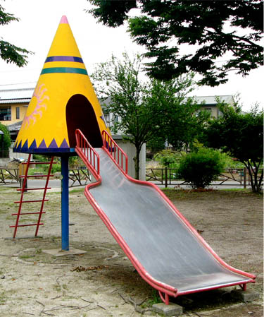 ![]() 偽木の標識 2010/6/20 ![]() 公園全体を西側から 2010/6/20 ![]() シマウマや馬の乗り物 2010/6/20 ![]() ピッカピカのスロープ。裾広がりで安全性が高そう。 2010/6/20 |