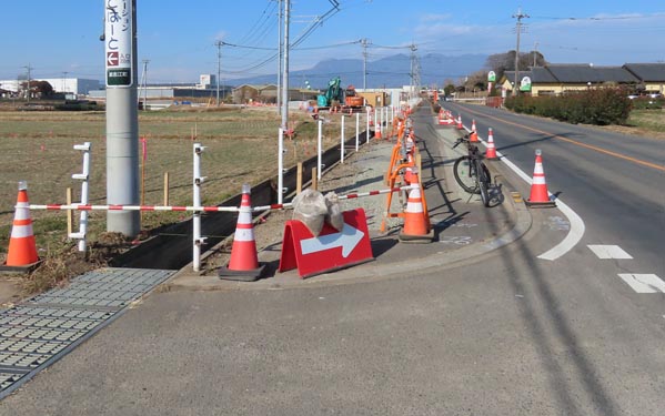 1月8日時点で、路床工事と現道とのすり付け部の側溝布設や雨水枡布設工事が進んでいます。工事看板には休工中看板が貼り付けられていましたが、年末年始の休工だったかも知れません。(2025/1/16 記) ■工事場所:前橋市飯土井町 地内 ■発注部署:群馬県前橋土木事務所 ■工期:令和6年(2024年)9月9日〜7年3月31日 ■工事会社:岩上建設株式会社さん ![]() 元畑地を掘削して進む路床工事(北から南東方) 2025/1/8 ![]() 工事看板。後方に赤城山。2025/1/8 ![]() 現道(左側)とのすり付け部。側溝と雨水桝布設完了。(東から西方)2025/1/8 ![]() 元畑地を掘削して進む路床工事。丁張は道路センター。 (南東から北西方)2025/1/8 ![]() 元畑地を掘削して進む路床工事。左側は歩道部(南東から北西方)。2025/1/8 |