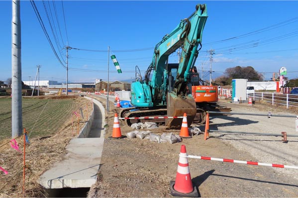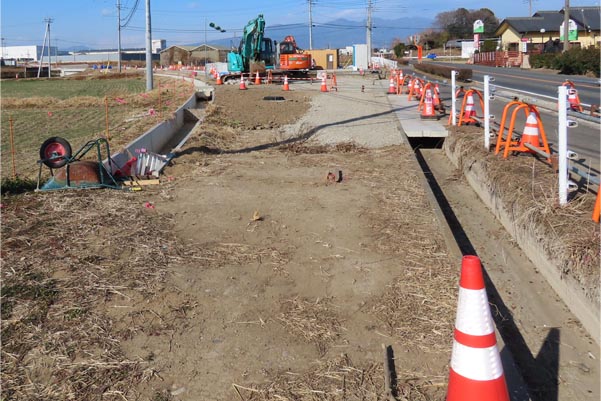 伊勢崎市道(伊)1-58号線(U型用水路布設)![]() 伊勢崎市道(伊)1-58号線では道路北側のU型用水路を布設 2023/6/25 ![]() 市道(伊)1-504号線との交差部から西方(工事側) 2023/6/25 |