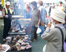 ![]() ↑この長い行列は、 焼きさんまの無料配布↓ ![]() ハイ、どうぞ |
