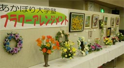 公民館1階の東側ホールでは あかぼり大学塾の 様々な作品が展示されています。 |