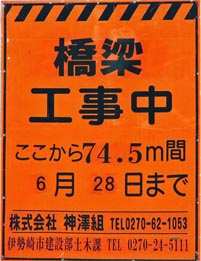 | 施工延長 L=215.2m PC橋工 プレテンション桁 13本 縁石工 歩車道境界ブロック L=46.1m外 附帯工 重力式擁壁 H=2000 2基外 舗装工 表層 A=1525.3u外 側溝工 落蓋式側溝 300×300 L=54.9m外 発注部署:伊勢崎市建設部土木課 工事名:市道(赤)108号線今宮橋上部工事 工事場所:伊勢崎市下触町 地内 工事会社:株式会社 神澤組さん 工期:2019/8/1〜2020/3/13 |