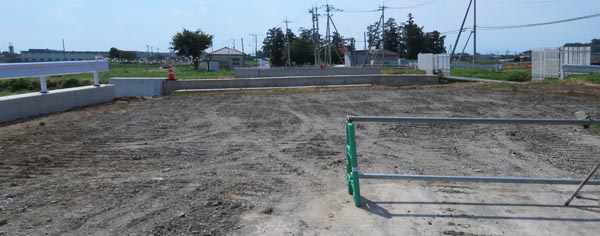 ![]() 左岸側の橋台背面センターから、右岸側を見る 2019/8/8 左岸側取り付け道路![]() 左岸側の橋台背面。擁壁施工やガードレール設置、路盤工完了 2019/8/8 |