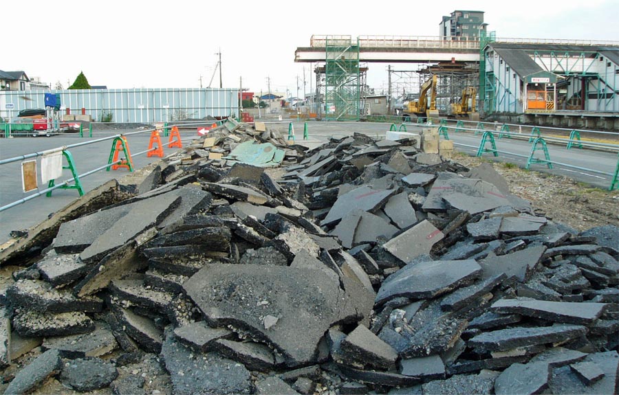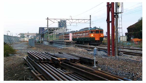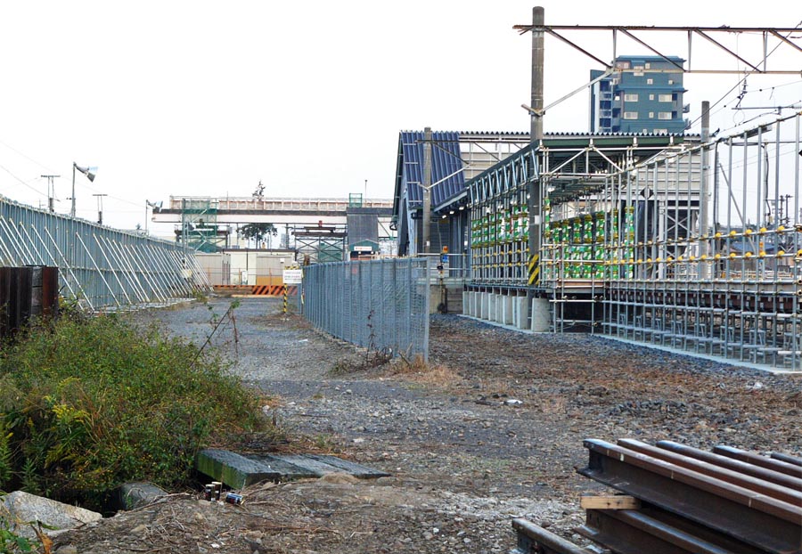 ![]() 工事用塀に囲まれたJR両毛線地上軌道(駅西方)。右後方に「アイタワー花の森」 2007/11/17 ![]() 工事用塀に囲まれた伊勢崎駅ホーム。右後方に「アイタワー花の森」 2007/11/4 ![]() 駅北で進む道路工事。既設アスファルト舗装を剥離。2007/11/4 |