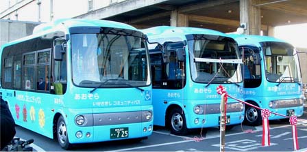 | 2007/12/19、午前9時から伊勢崎市役所正面玄関前で「伊勢崎市コミュニティバス出発式」が執り行われました。 伊勢崎市では、現在も15路線のコミュニティバスが市内全域を運行していますが、平成17年1月の四市町村合併に伴い、新たな街づくりのためにバスの機能やルート等について再検討を続け、今回その晴れのお披露目になったとのことです。 新しいバスの愛称は市民公募で「あおぞら」と決まり、車体の色も青空のように、明るく爽やかな青です。 新ルートの正式発表はまだ先のようですが、基本的な考え方は当日配布の資料で発表されました。こちらをご覧ください。 (2007/12/19 記) |