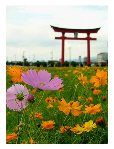 ![]() 大鳥居周辺で黄花コスモスが咲き始めたあずまコスモス畑2012/9/29 |