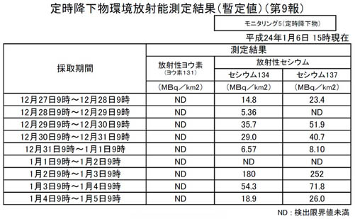 12月29日、30日と高かった福島市のセシウム降下量は、いったん12月31日、1月1日と下がったものの、1月2日には「4月なみ(4月は福島からのデータはないので、茨城県北部のデータを参照した)」セシウムが降っている。