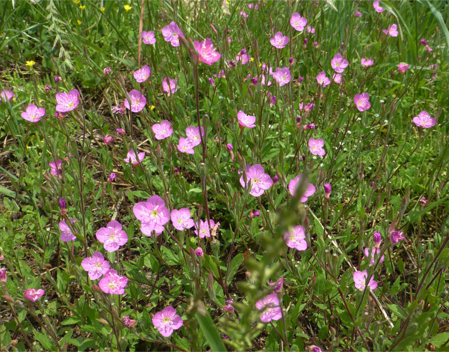 紅花夕化粧(アカバナユウゲショウ)この花を最初に紹介したのは2011年6月。自宅から前橋みなみモールへのサイクリングコースで出会った時でした。以来、あちらこちらで見かけるようになり、我が家の庭でも植えた覚えもなく、あちこちで咲いています。オープンガーデンでお邪魔したお宅の庭でも見かけたりしました。ここ数年、野やあぜ道で咲く花の主役になりつつあります。今回紹介するのは伊勢崎市赤堀地区の五目牛町のあぜ道で咲いていました。(2015/6/5 記)(以下、ネットの記事を要約) ●アカバナ科の多年草 草丈:20〜50cm ●花期:5〜7月 ●原産:北アメリカ南部 ●学名:Oenothera rosea 花は直径1.5cm。薄い桃色の4枚花。赤い筋がある。昼から夜間に咲く。明治・大正時代渡来し、観賞用に栽培されていたものが野生化。 |