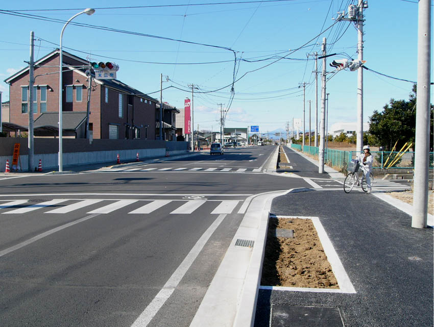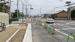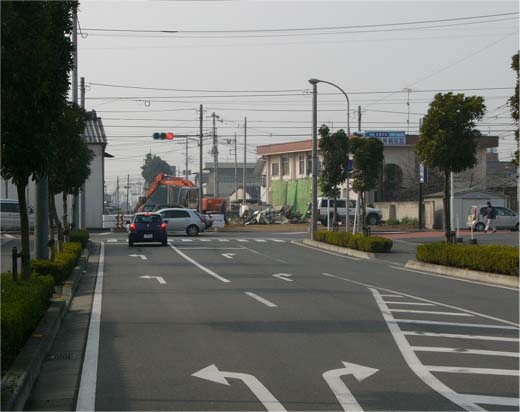 | 安堀町・美茂呂町線の末広町〜大胡県道間の工事について、2010年8月7日に暫定開通後、大胡県道の交差点の信号機設置を待つ状態でしたが、11月13日に訪れてみると、信号機の設置を終えていました。まだ使用は開始されていませんが、遠からず信号も道路も開通になることでしょう。(2010/11/14 記) | ||